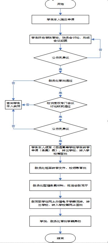 序号职权名称转学审批2职权内容审批在籍本科生因患病或有特殊困难、特别需要而提出的转学申请。权力运行外部流程办理主体学院、本科生院教务处办理依据1.《普通高等学校学生管理规定》(教育部令第41号)2.《黑龙江省教育厅关于进一步规范普通高等学校转学备案的通知》(黑教学函〔2015〕363号)3.《哈尔滨工业大学本科生学籍管理规定》(哈工大本〔2020〕134号)4.《哈尔滨工业大学本科生转学管理办法》(哈工大本〔2019〕268号)办理程序依据《黑龙江省教育厅关于进一步规范普通高等学校转学备案的通知》和《哈尔滨工业大学本科生转学管理办法》中工作程序。办理期限每年5月30日或11月30日监督渠道院、校两级公示所需材料1.学生本人书面申请2.患病学生需提供学校指定医院诊断证明;特殊困难、特殊需要需开具街道、乡镇以上民政部门相关证明3.转出学??己思ㄒ饧谎救顺杉ǖィ桓呖悸既∶?.转出学校相关专业最低录取分数、拟转入学校相关专业最低录取分数5.转入学校相关部门意见6.召开院、校两级会议研究表决情况的会议纪要和校长签署意见情况权力运行内部流程运行环节由学生本人提出申请,院、校两级审核后,报